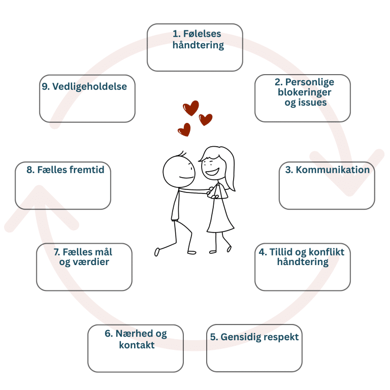 Vores online forløb for par er bygget op over de 9 elementer i parforholdet.